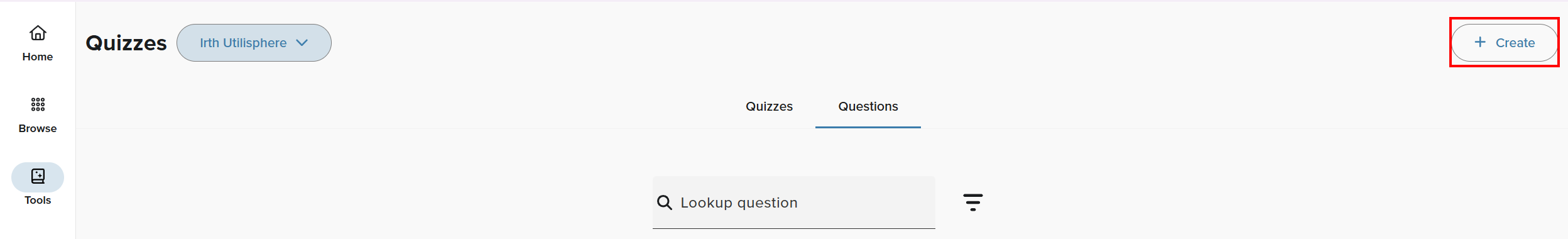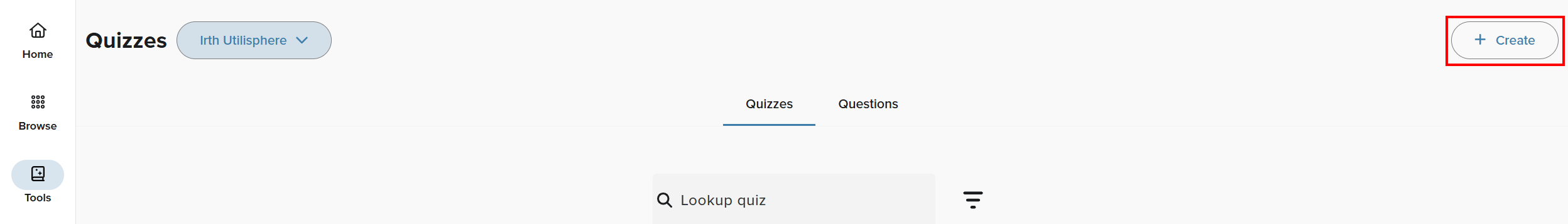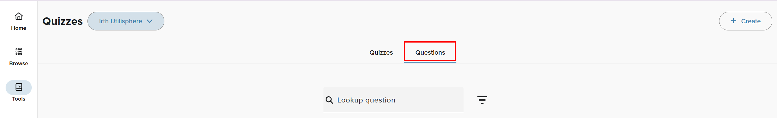- From the Tools menu, select Quizzes and go to the Questions tab.