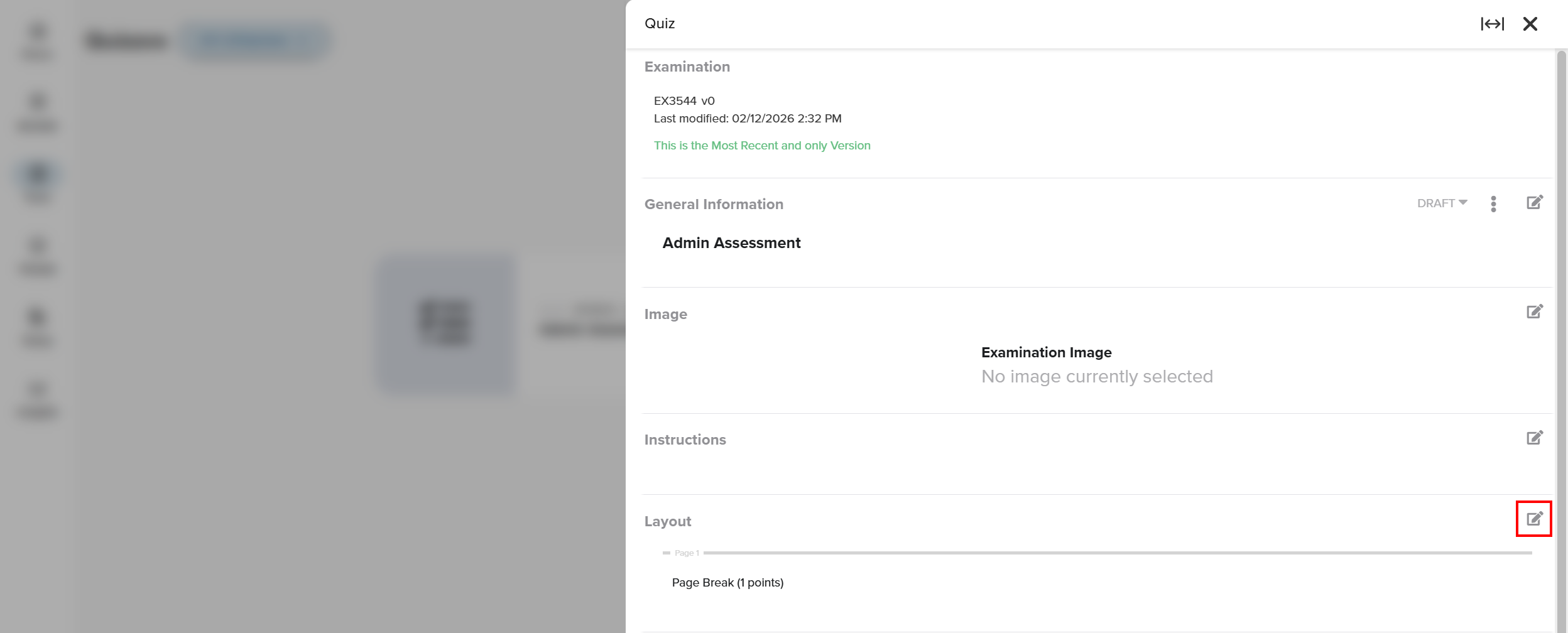 Click the Edit button for the Layout section. This section controls how questions and content are presented to learners.