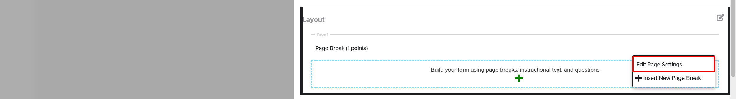 - In the Layout section, in edit mode, hover over the Page Break title to open the Options menu.