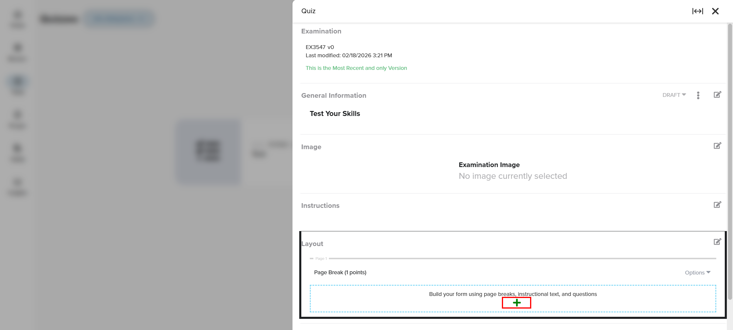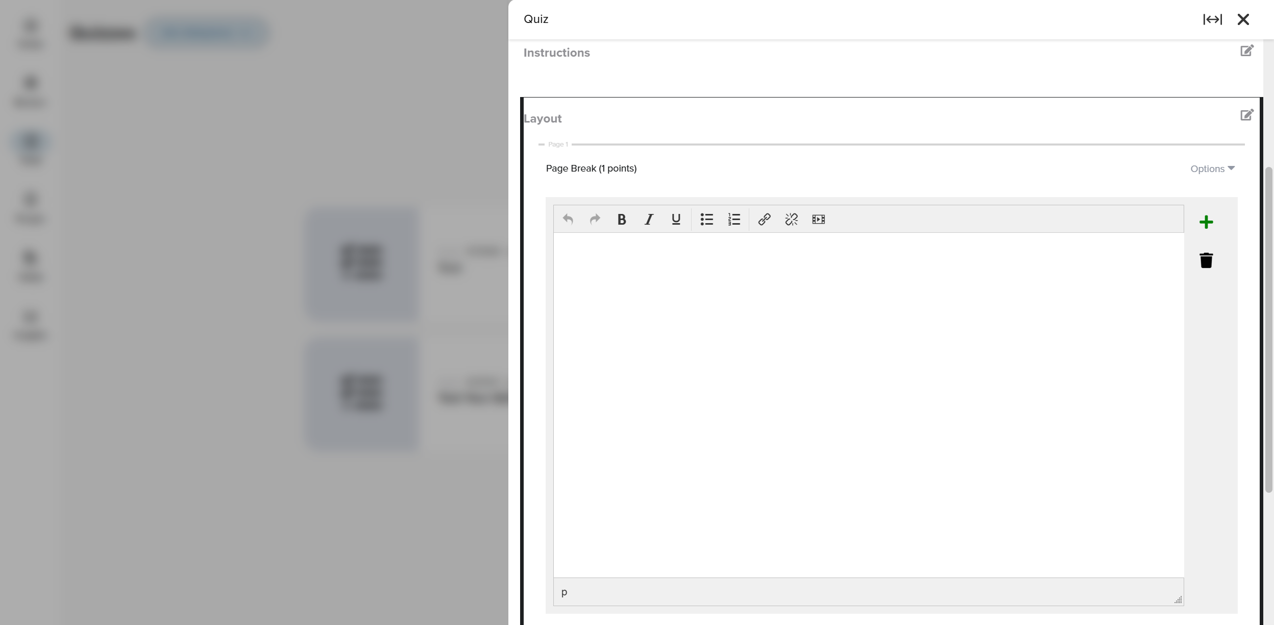 By default, a quiz or survey starts with a single page. You can add additional pages if you want to group questions into sections or control how points are distributed.