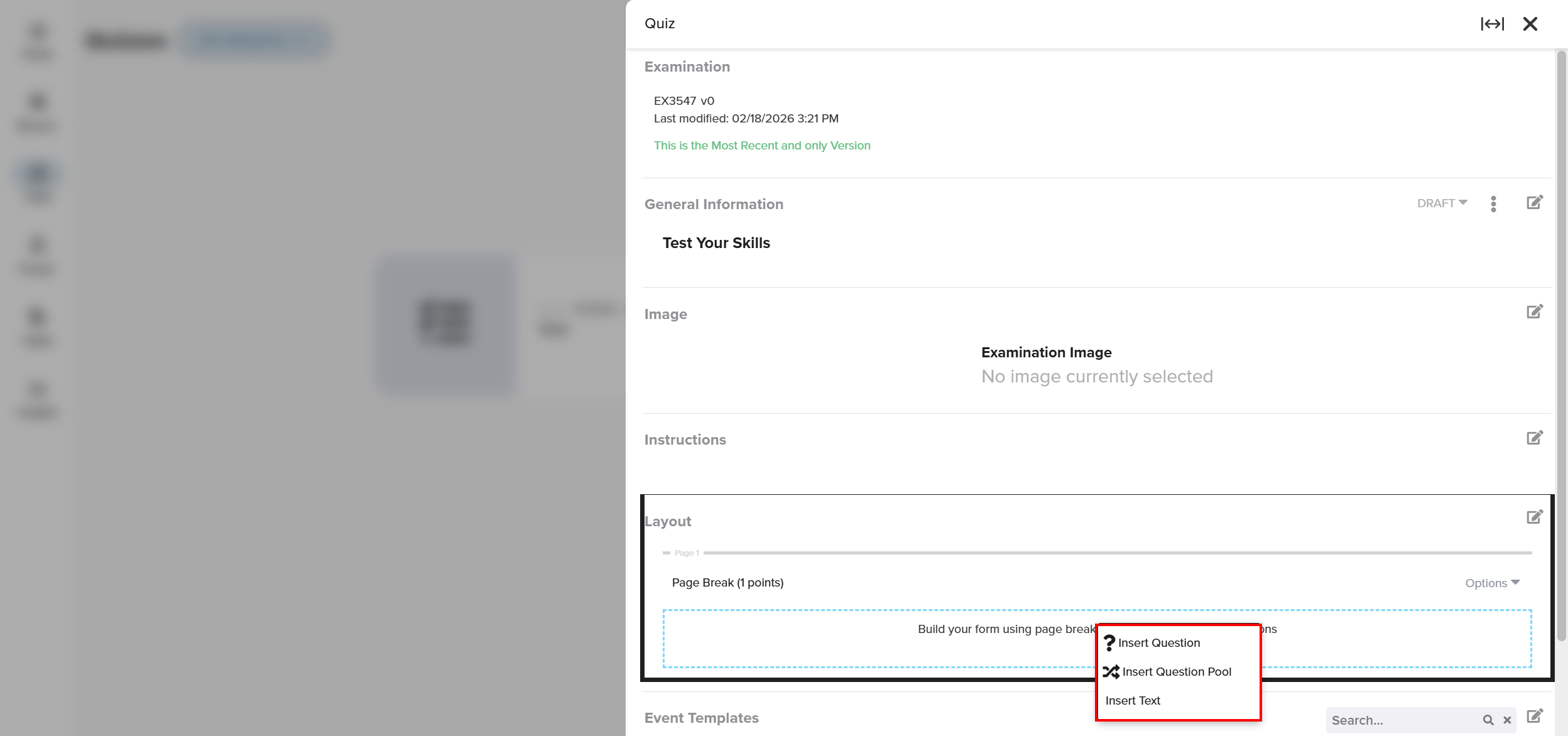 - Insert Custom Pool: Select a set number of questions from a question pool. Questions are randomly selected to create varied assessments and reduce repetition.