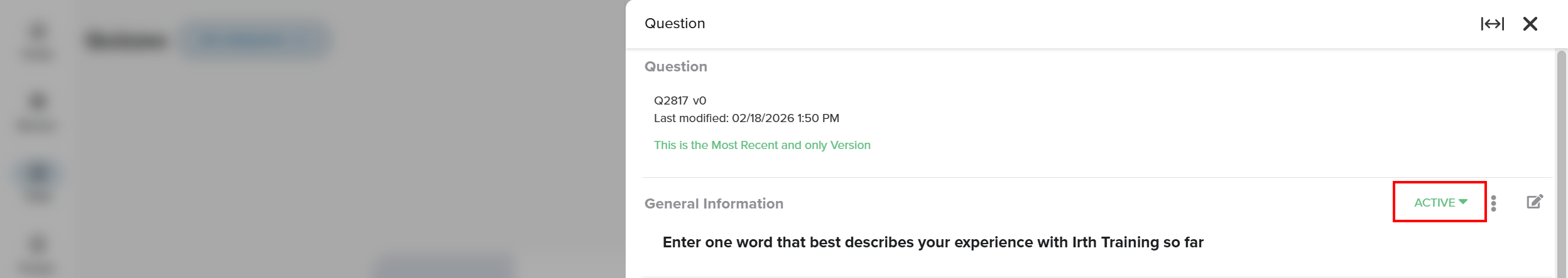 NOTE: Questions must be in an Active state to be available to add to a Quiz or Survey.